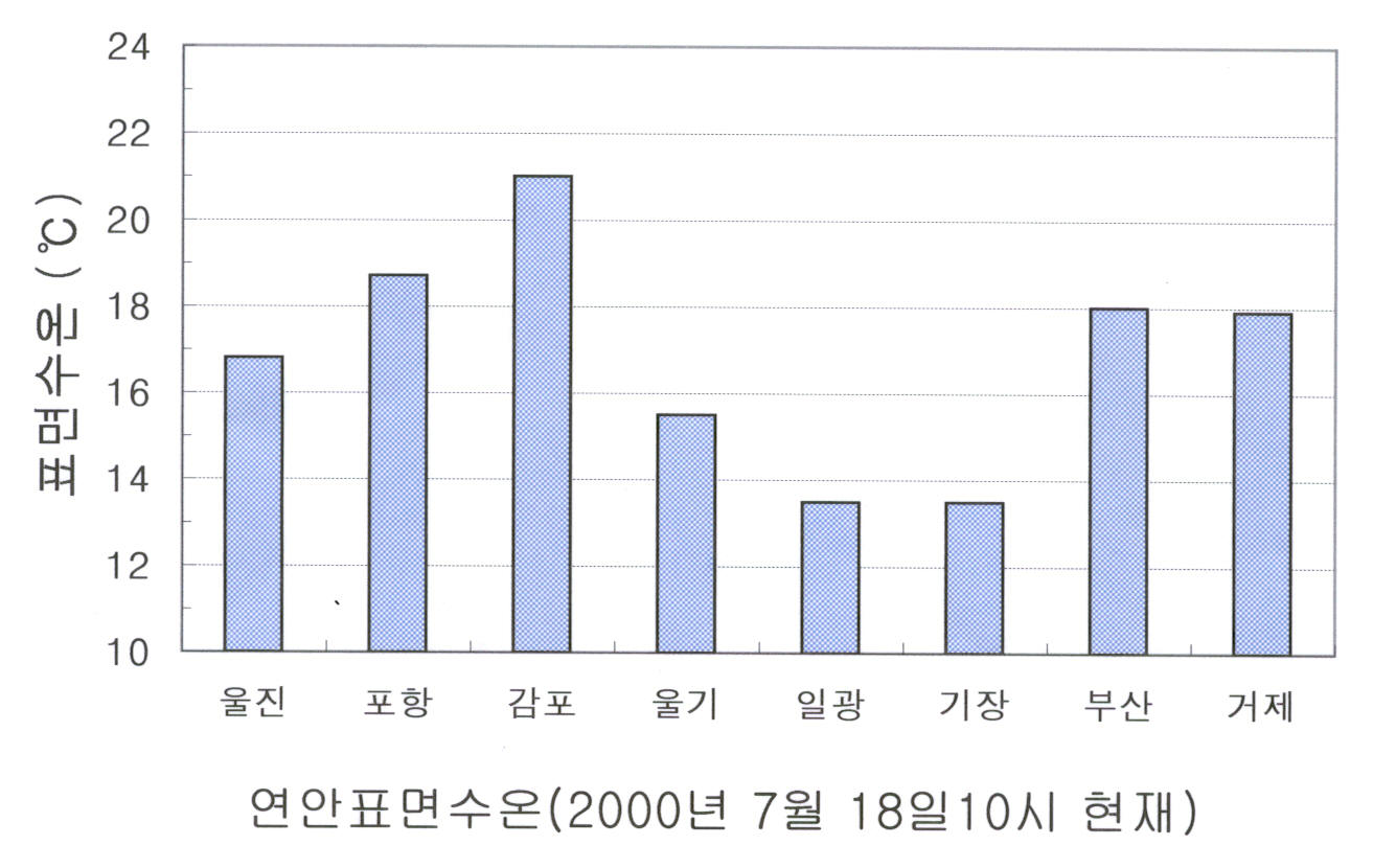 o 2000년 7월 18일 오전 10시 현재 동해연안 수온은 울진연안 16.8도, 감포