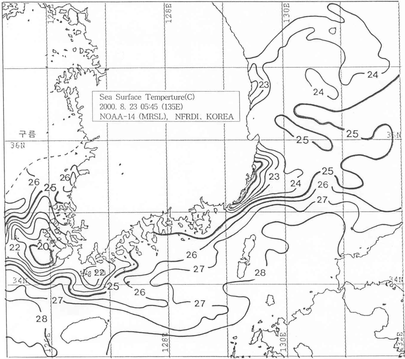 o 2000년 8월 23일 오전 10시 현재의 울산연안 수온이 17도로 나타나