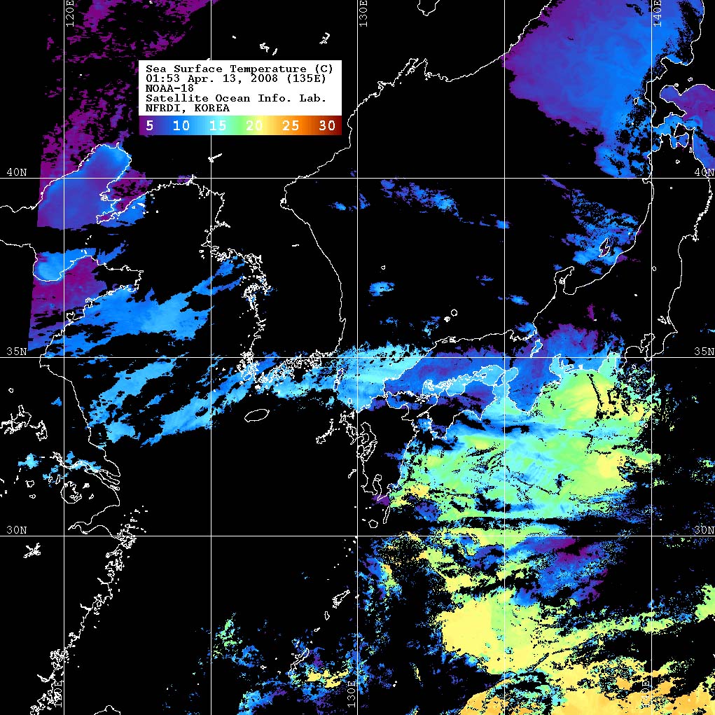 o 2008년 04월 13일 01시 53분 NOAA-18호 위성영상입니다.