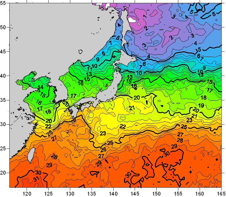 o 2008년 05월 27일 북서태평양 광역해양 수온분포 입니다.