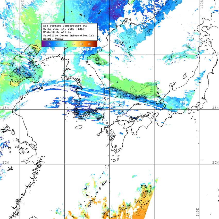 o 2008년 06월 14일 02시 50분 NOAA-18호 위성영상입니다.