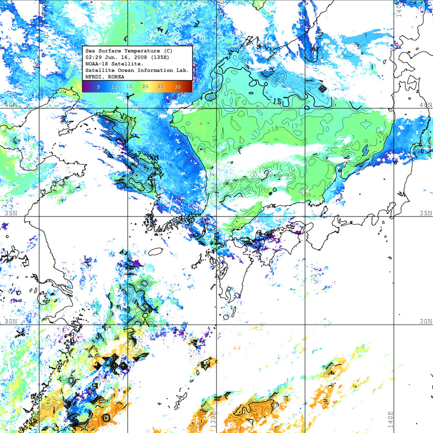 o 2008년 06월 16일 02시 29분 NOAA-18호 위성영상입니다.