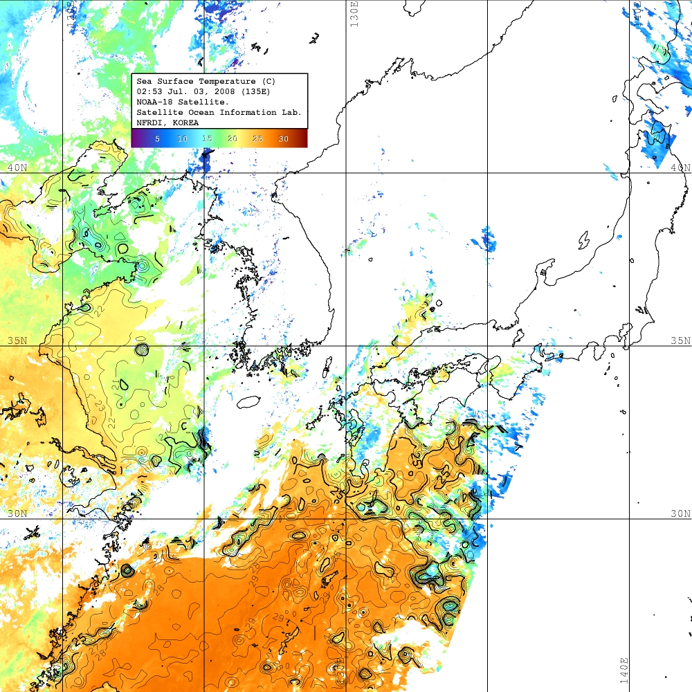 o 2008년 07월 03일 02시 53분 NOAA-18호 위성영상입니다.