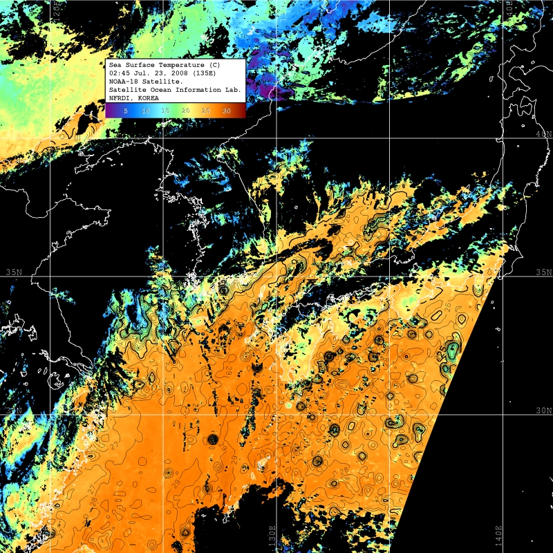 o 2008년 07월 23일 02시 45분 NOAA-18호 위성영상입니다.