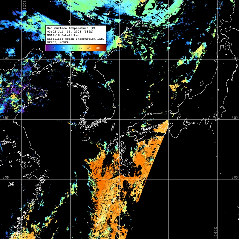 o 2008년 07월 31일 03시 02분 NOAA-18호 위성영상입니다.