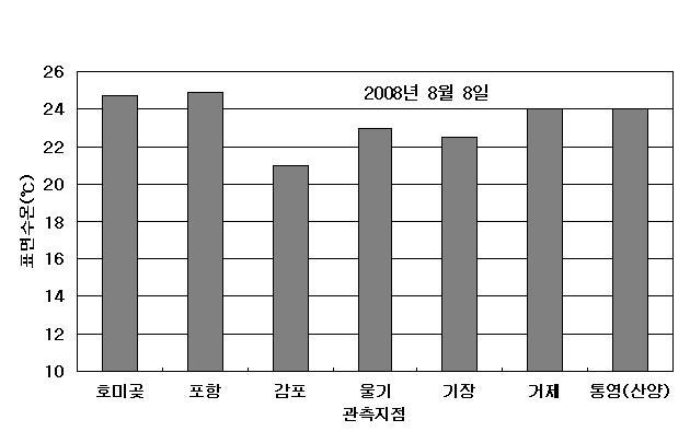 o 2008년 8월 8일 오전 11시를 기해 거제, 기장-포항 및 울진연안의 냉수대 주의보를 해제합니다.
