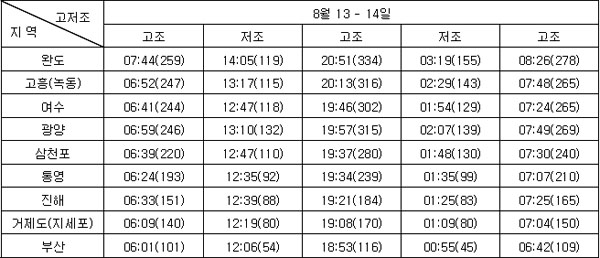 3. 조석 및 해수유동 전망 * 지역별 조석상황