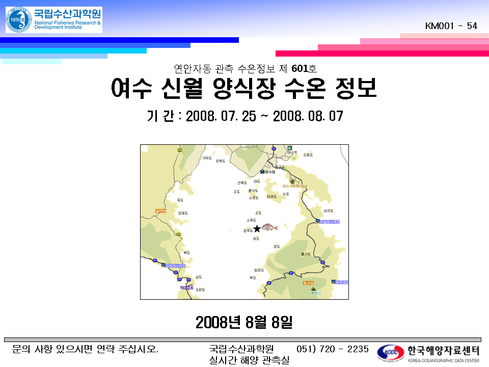 * 연안 자동자동 관측 수온정보 제1호부터 제599호까지는 관련어업인들에게 우송하였습니다. * 클릭하면 선명하게 보입니다.