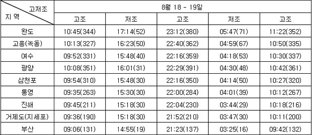 | 적조관련 해양기상 정보-8월18일(해양자료속보, 제3454호) | |||||