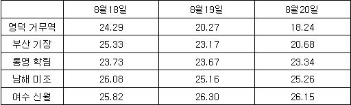 * 인공위성 남해 광역표면수온 정보