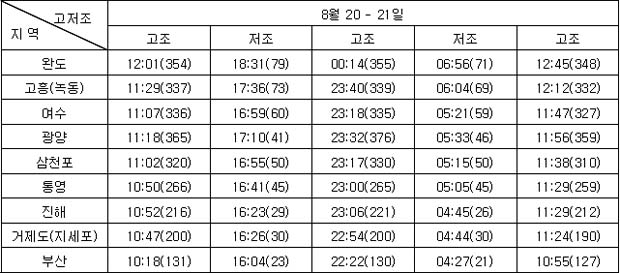 3. 조석 및 해수유동 전망 * 지역별 조석상황