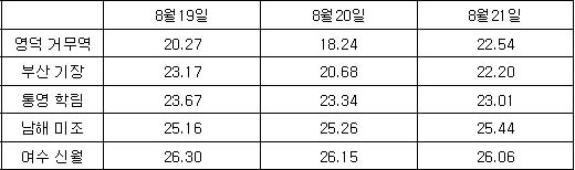 * 인공위성 남해 광역표면수온 정보