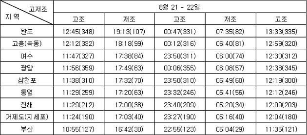 3. 조석 및 해수유동 전망 * 지역별 조석상황