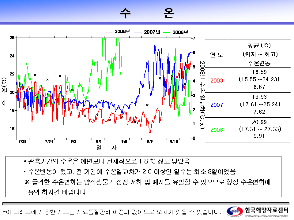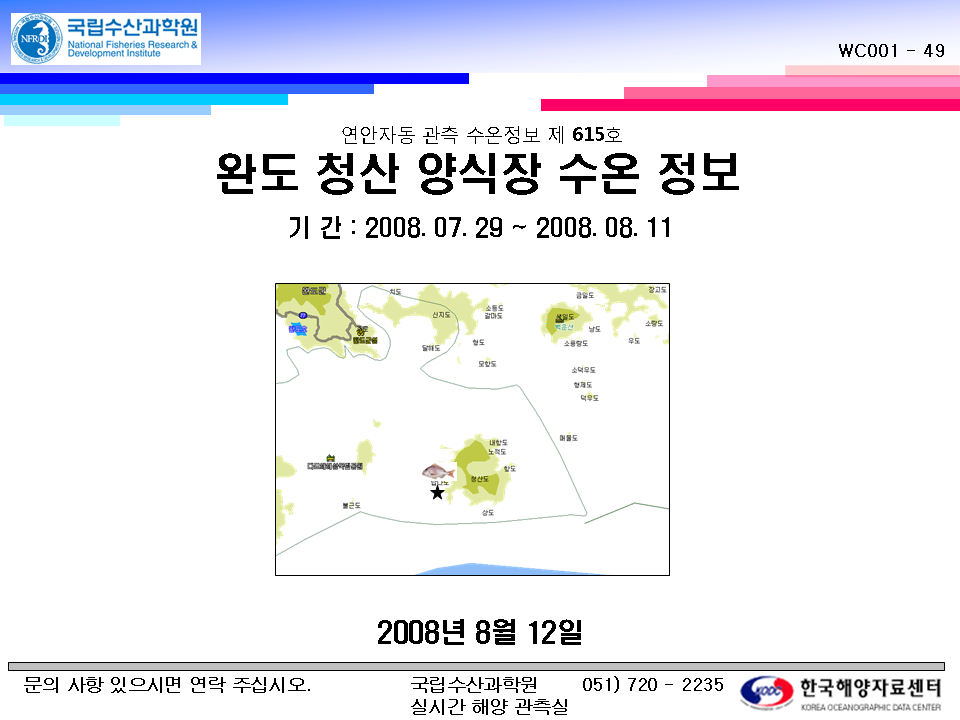 * 연안 자동관측 수온정보 제1호부터 599호까지는 관련어업인들에게 우송하였습니다. * 클릭하며 선명하게 보입니다.