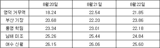 1. 수온 정보 * 연안 수온 정보 (10시 기준)