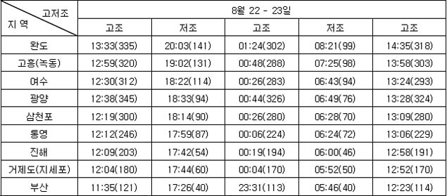3. 조석 및 해수유동 전망 * 지역별 조석상황