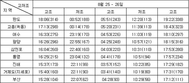3. 조석 및 해수유동 전망 * 지역별 조석상황
