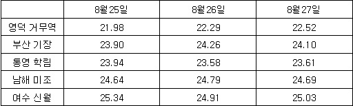 1. 수온 정보 * 연안 수온 정보 (10시 기준)