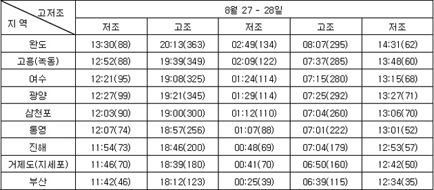 3. 조석 및 해수유동 전망 * 지역별 조석상황