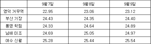 * 인공위성 남해 광역표면수온 정보