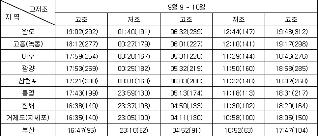 3. 조석 및 해수유동 전망 * 지역별 조석상황