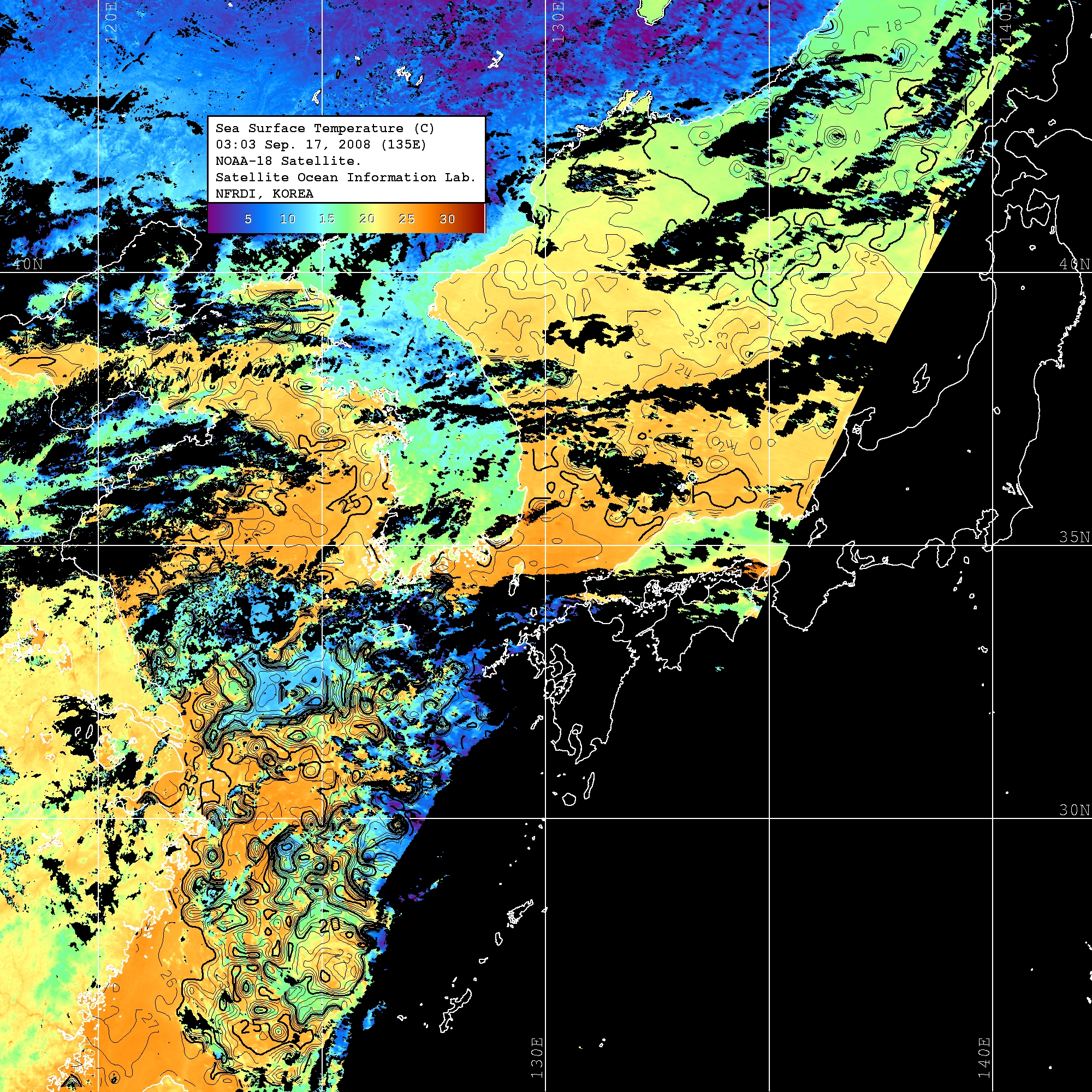 o 2008년 09월 17일 03시 03분 NOAA-18호 위성영상입니다.
