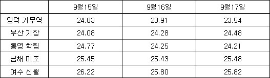 | 적조관련 해양기상 정보-9월17일(해양자료속보, 제3492호) | |||||
