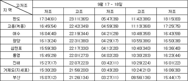 3. 조석 및 해수유동 전망 * 지역별 조석상황