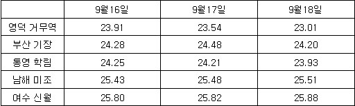 * 인공위성 남해 광역표면수온 정보