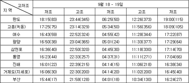 3. 조석 및 해수유동 전망 * 지역별 조석상황