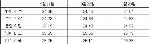 * 인공위성 남해 광역표면수온 정보