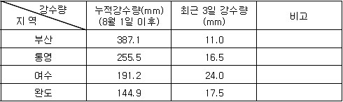 (Sept. 23. 2008) 2. 기상전망 (기상청 예보 자료) * 바람 및 파고 전망 오늘 남해서부에서 바람은 북서풍 내지 북동풍이 6~9m/sec, 파고는 0.5~1.5m 내외로 예상되며, 남해동부에서는 북동풍 내지 남동풍이 8~12m/sec, 파고는 1.0~2.0m로 예상됨. 내일은 남해서부에서 바람은 북동풍 내지 남동풍이 6~9m/sec, 파고는 0.5~1.5m 내외로 예상되며, 남해동부에서 바람은 북동풍 내지 남동풍이 9~13m/sec, 파고는 1.5~2.5m로 예상됨. * 특보 발효 현황 ㅇ 없 음 * 강수량