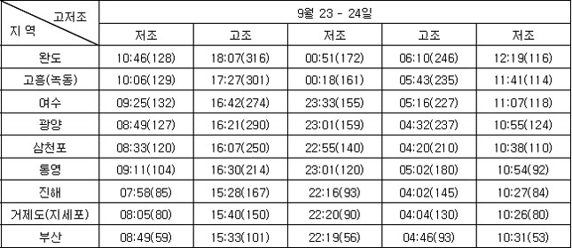 3. 조석 및 해수유동 전망 * 지역별 조석상황