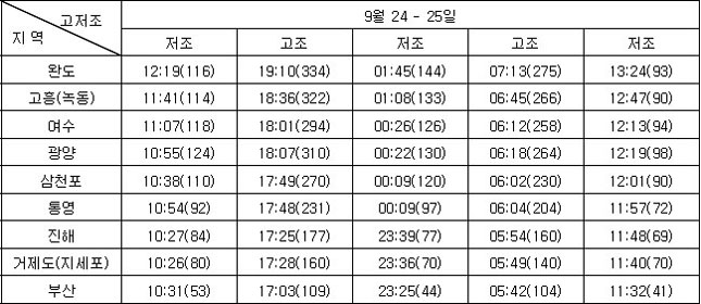 3. 조석 및 해수유동 전망 * 지역별 조석상황
