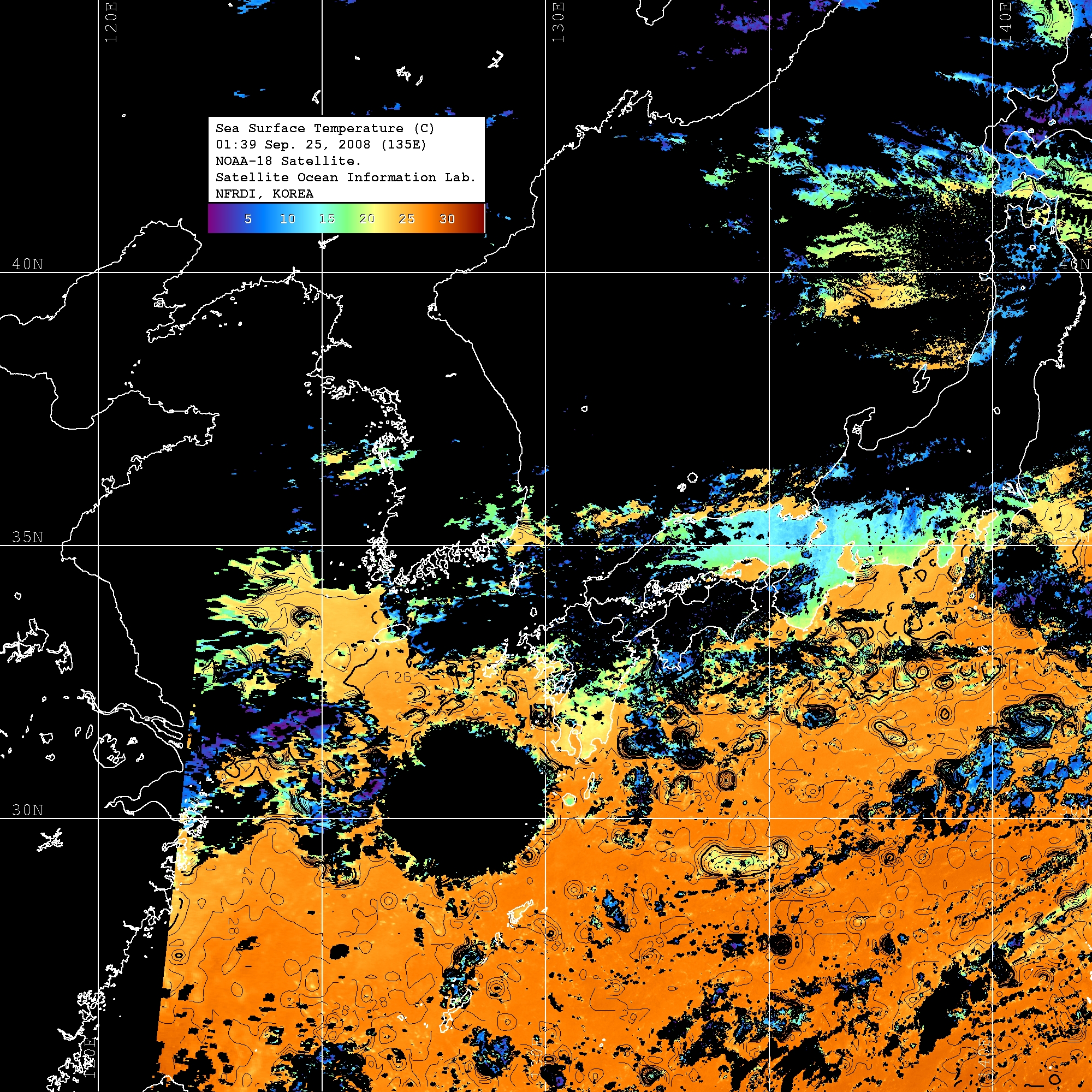 o 2008년 09월 25일 01시 39분 NOAA-18호 위성영상입니다.