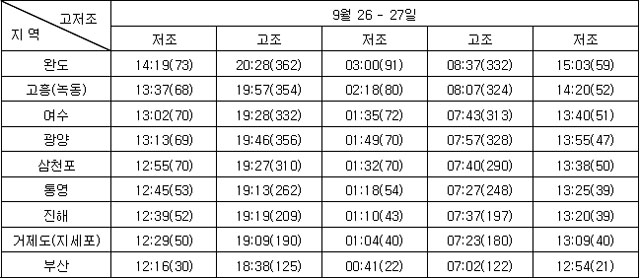 3. 조석 및 해수유동 전망 * 지역별 조석상황