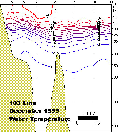 o 수온약층은 수심 50∼150 m 사이에서 8도를 중심으로 형성되었습니다.