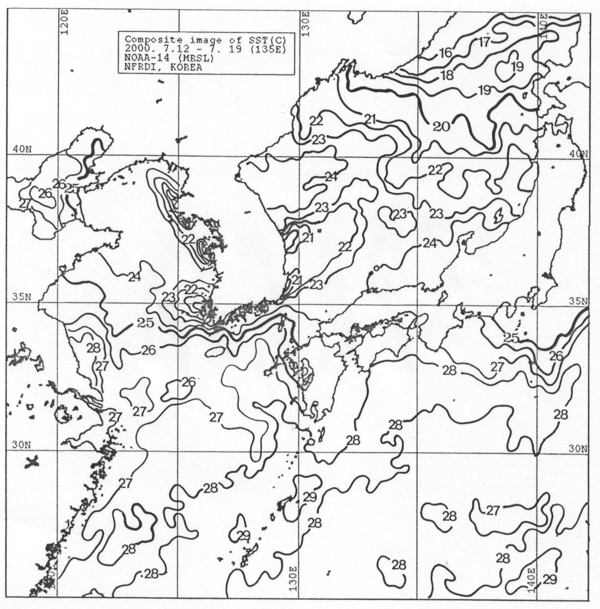 o 아래그림은 2000년 7월 12일부터 7월 19일까지 NOAA위성 영상을 합성한 한국