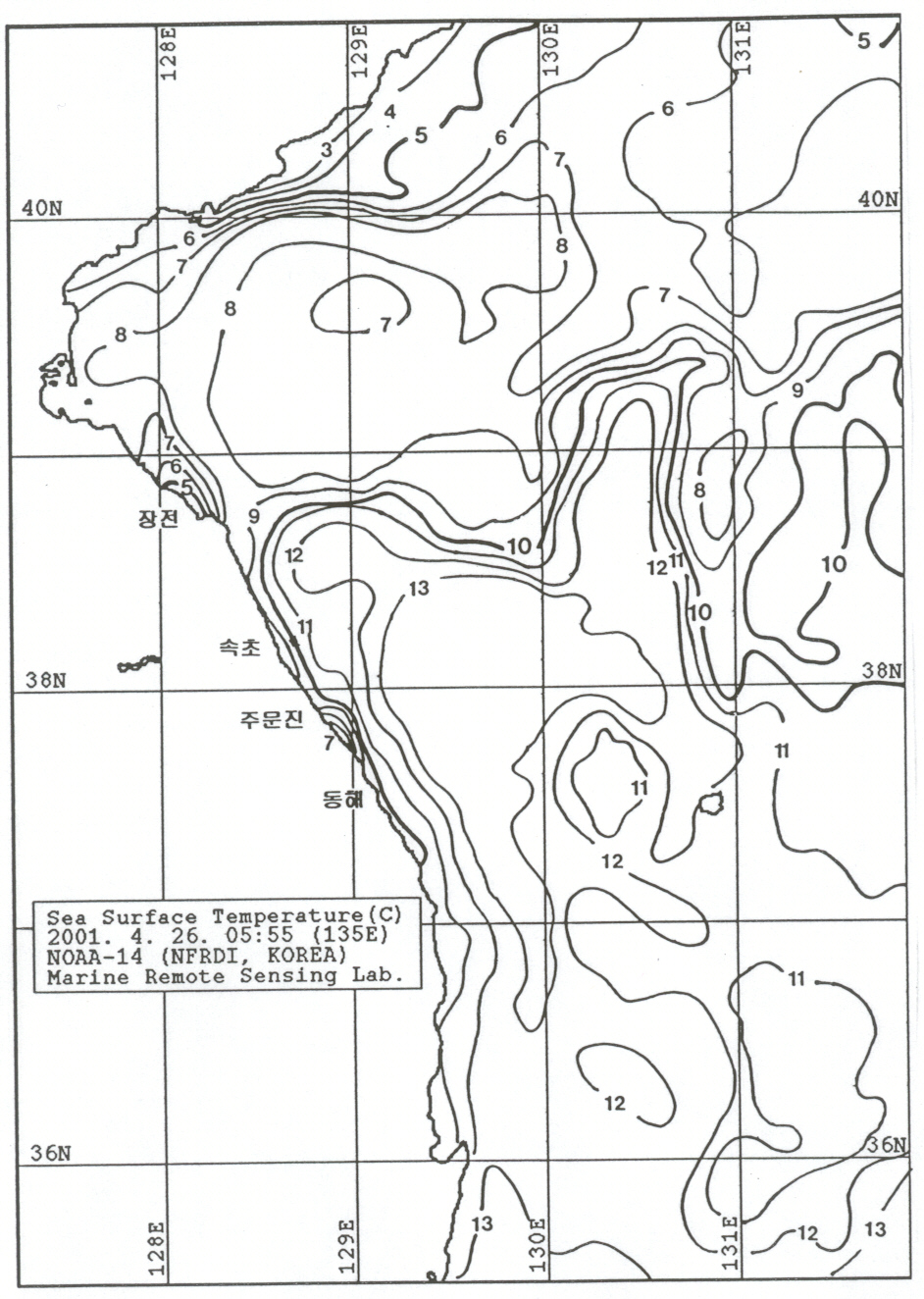 | 동해 연근해역 수온정보(해양자료속보, 제 1996호) | |||||