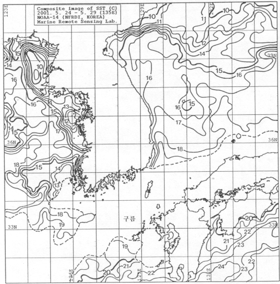근해, 이어도(파랑초) 근해 18∼19도, 어청도 근해 14∼15도 내외로