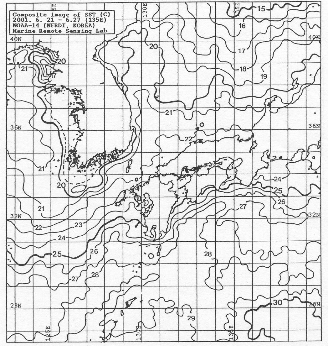 제주도 근해 20∼22도, 이어도(파랑초) 근해 21∼23도, 일향초 근해