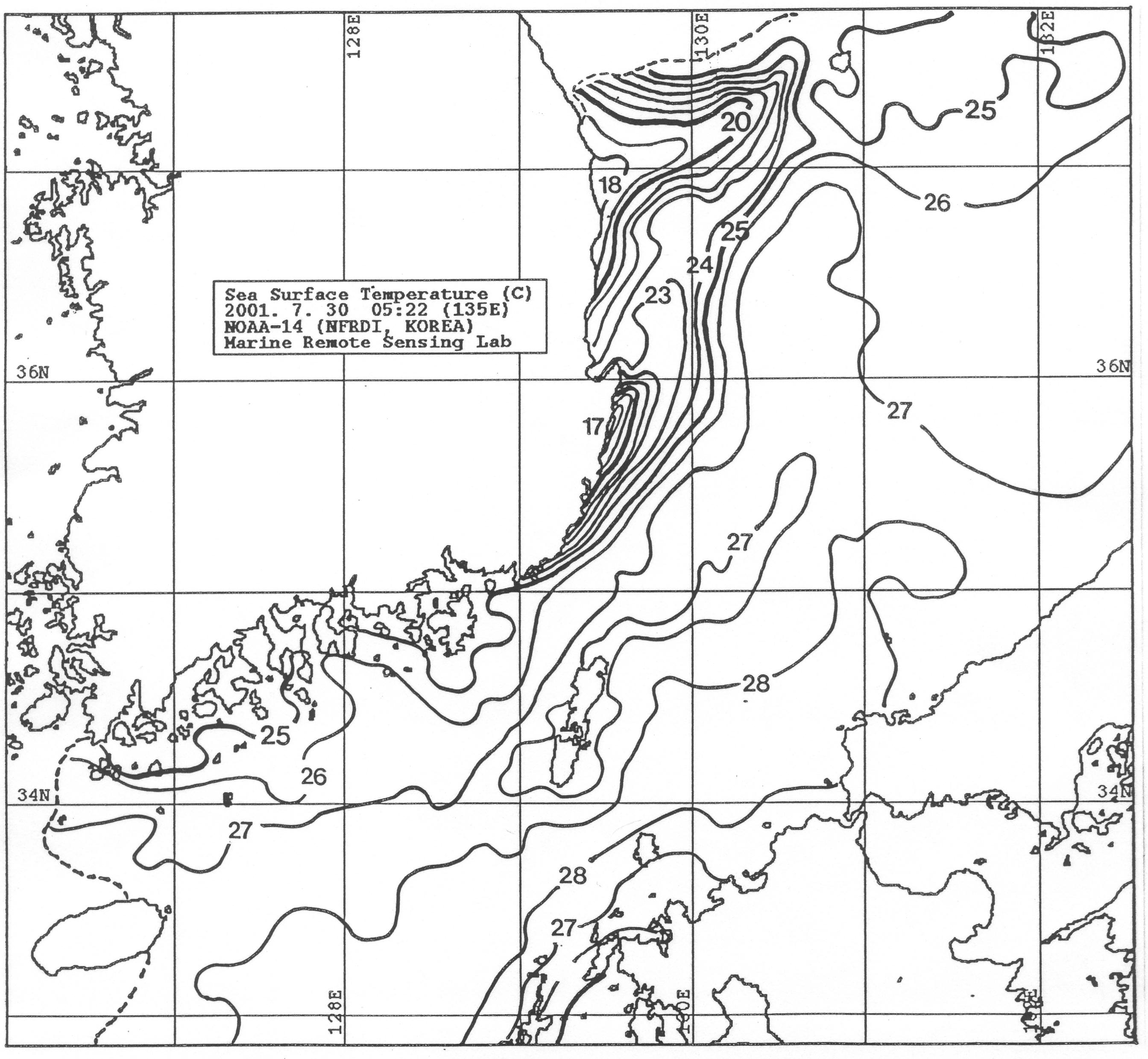 o 오늘 오전 10시 현재 동해연안 수온은 기장 22도, 일광 20도, 울기(울산)