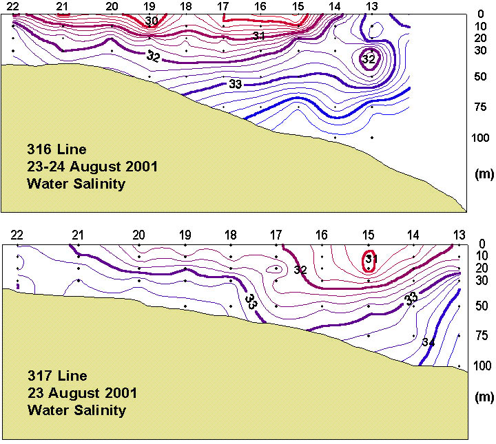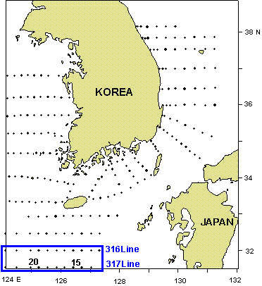 o 2001년 8월 23-24일 국립수산진흥원 해양연구과에서 조사한 316, 317선