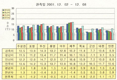 o 예보기간(2001. 12. 16 ∼ 12. 22)의 한반도 연안 표면수온은 동해 연안역