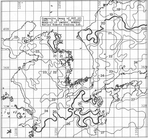 o 아래 그림은 2002년 9월 24일부터 30일 까지 합성한 위성추정 표면