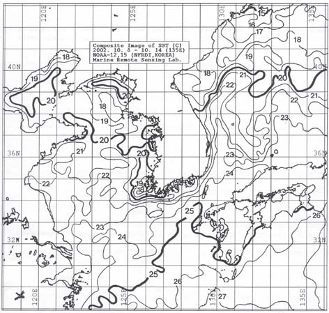 o 대화퇴 근해 표면수온은 섭씨 18∼20도, 울릉도 근해 20∼21도, 대마도