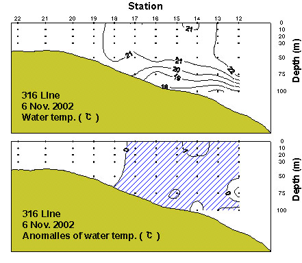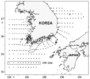 o 2002년 11월 6일 국립수산과학원 해양연구과에서 조사한 316선(동중국해