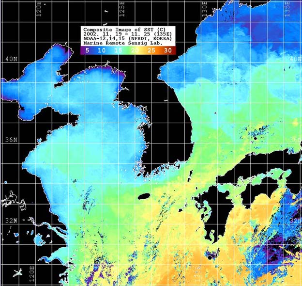 | 위성 수온 영상(2002. 11. 19 ~ 11. 25) | |||||