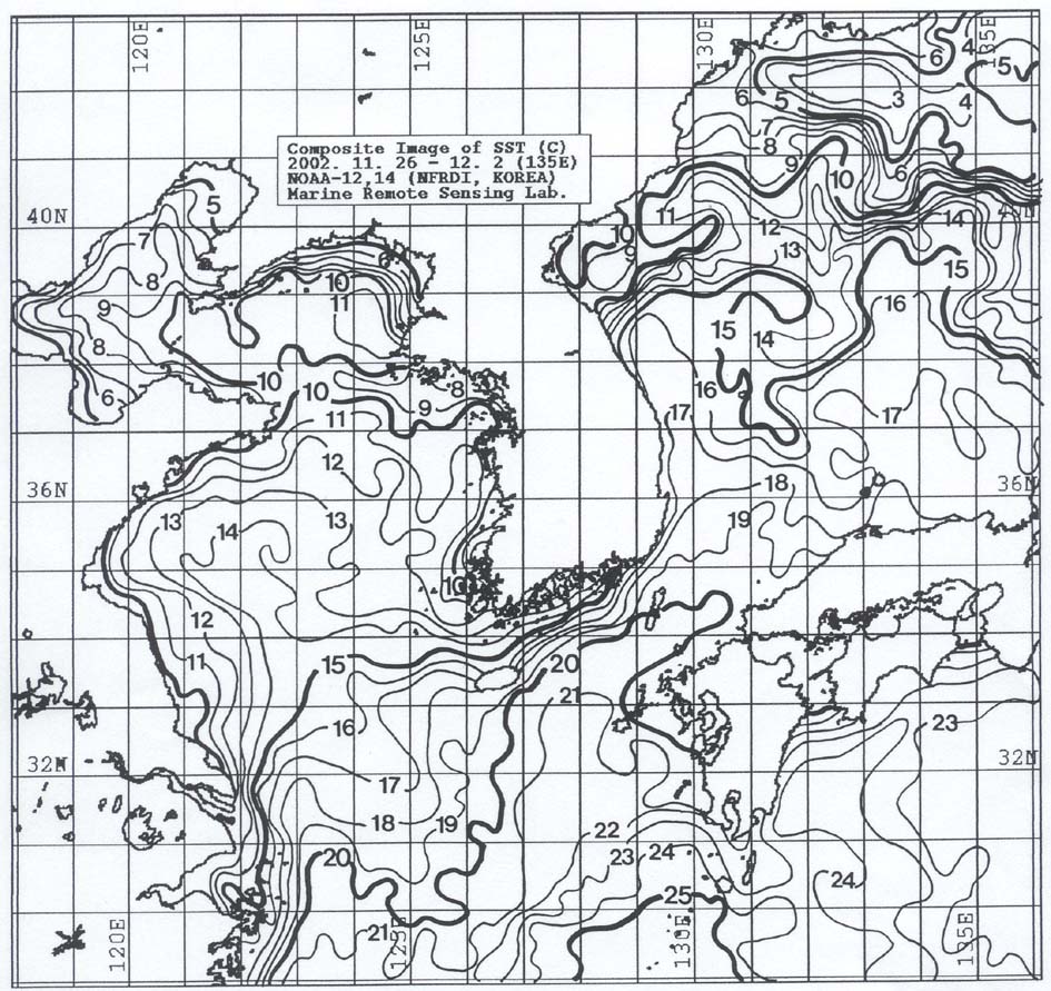 o 대화퇴 근해 13∼14도, 울릉도 근해 14∼16도, 대마도 19∼20도, 제주도