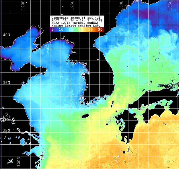 | 위성 수온 영상(2002. 11. 26~ 12. 2) | |||||